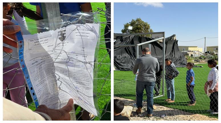 - الاحتلال يُخطر بهدم ملعب أم الخير في مسافر يطا