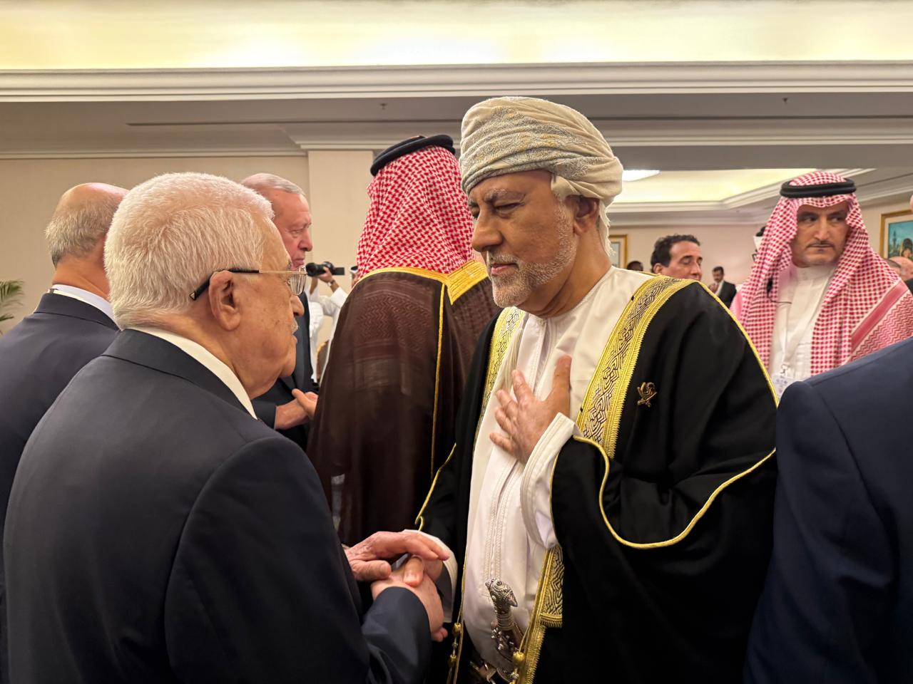 الدوحة 15-9-2025 وفا- التقى رئيس دولة فلسطين محمود عباس، اليوم الاثنين، نائب رئيس وزراء عمان لشؤون الدفاع شهاب بن طارق آل سعيد، ممثلا عن سلطان عمان على هامش أعمال القمة العربية الإسلامية الطارئة المنعقدة في الدوحة.