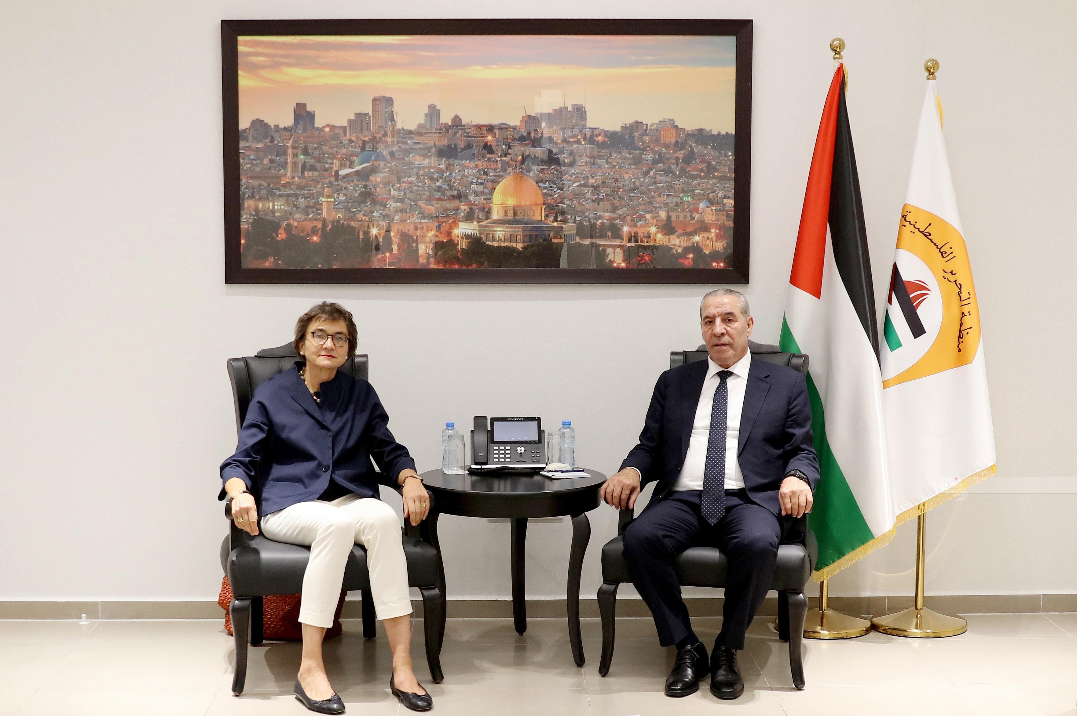 رام الله 22-9-2025 وفا- التقى نائب رئيس دولة فلسطين، حسين الشيخ، اليوم الاثنين، مع رئيسة بعثة الممثلية الألمانية أنكة شليم، ورئيس القسم السياسي بالممثلية هندريك أوتي.