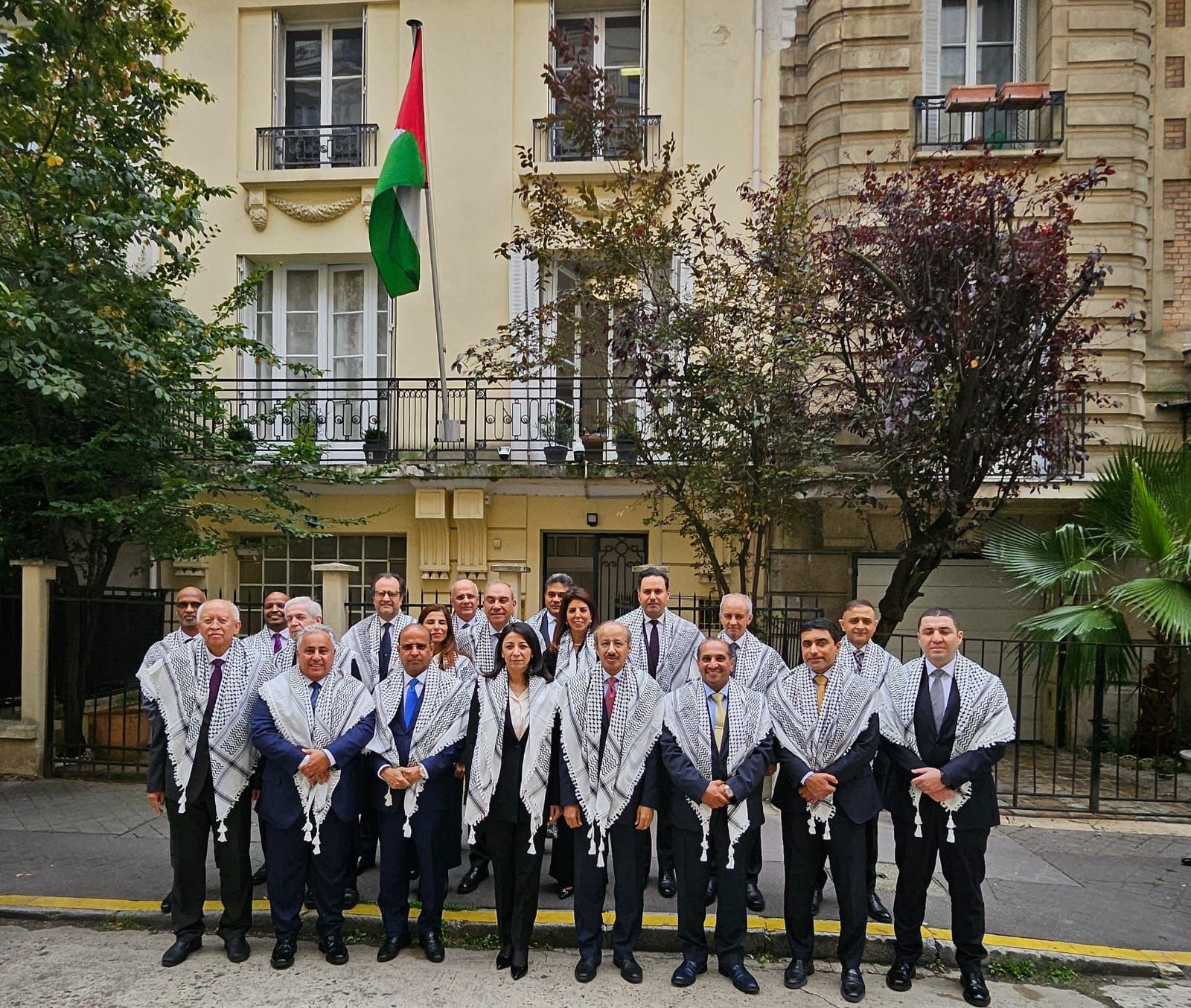 باريس 24-9-2025 وفا- استقبلت سفيرة دولة فلسطين لدى فرنسا، هالة أبو حصيرة، مجلس السفراء العرب المعتمدين لدى الجمهورية الفرنسية الذين حضروا لمقر سفارة دولة فلسطين لتقديم التهاني بالاعتراف الفرنسي بالدولة الفلسطينية.