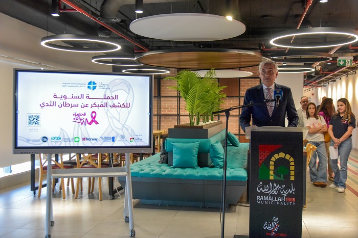 وأوضح قسيس، أن شراكة بلدية رام الله مع مستشفى المطلع تهدف إلى تعزيز الجهود المشتركة في التوعية بسرطان الثدي، لافتًا إلى أن الحملات التوعوية والفحوصات والورش الميدانية تشكّل ركيزة أساسية لحماية النساء وتشجيعهن على الفحص المبكر.