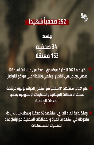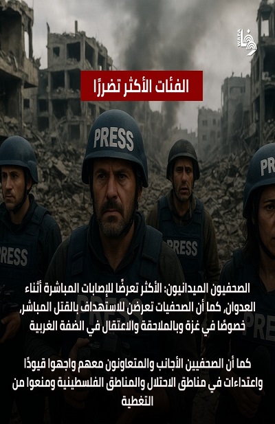"النقابة": 57 انتهاكا ارتكبها الاحتلال ضد الصحفيين الفلسطينيين خلال تشرين الثاني 2025