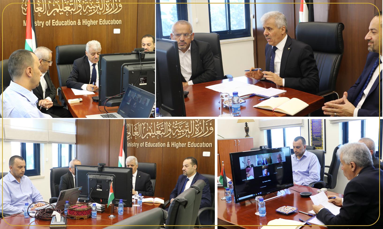 رام الله 14-10-2025 وفا- بحث وزير التربية والتعليم العالي أمجد برهم، عبر الاتصال المرئي، اليوم الثلاثاء، مع رؤساء الجامعات في قطاع غزة، سبل تعزيز الدعم والإسناد للتعليم العالي في القطاع، خاصةً في أعقاب حرب الإبادة المدمّرة التي شنها الاحتلال على غزة وما خلّفته من آثار كارثية على المؤسسات الأكاديمية والبنية التحتية التعليمية.
