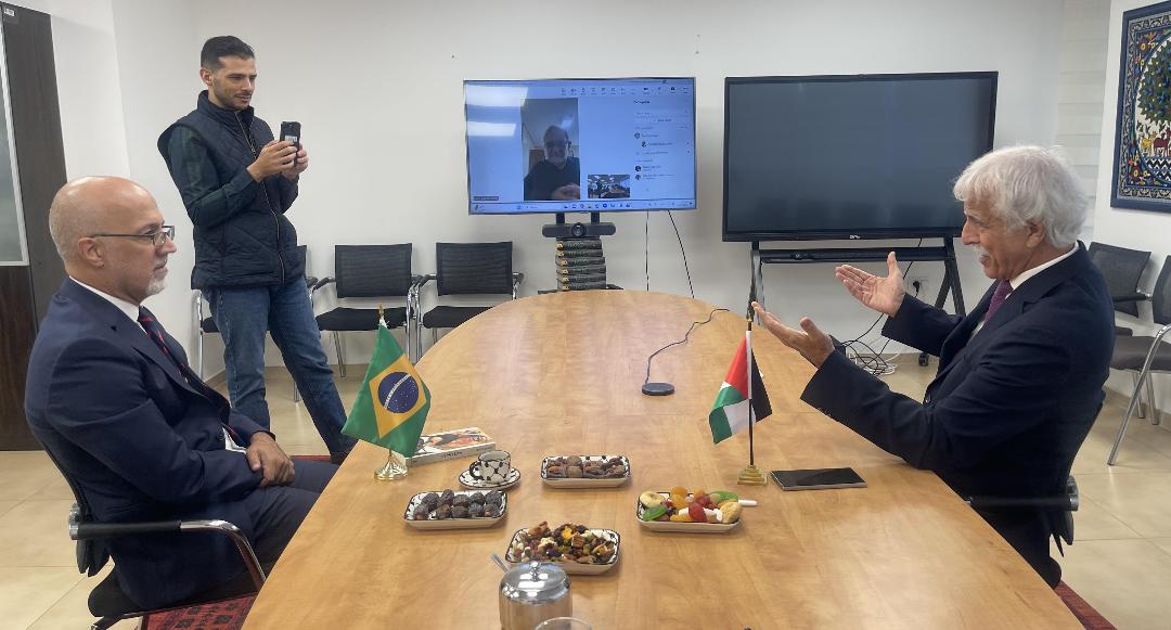 جاء ذلك بمشاركة رئيس المكتبة الوطنية الفلسطينية مروان عورتاني، ورئيس المكتبة الوطنية البرازيلية ماركو لوتشيزي (عبر تقنية الاتصال المرئي)، وممثل البرازيل في دولة فلسطين السفير جواو مارسيليو كيروز سواريس.