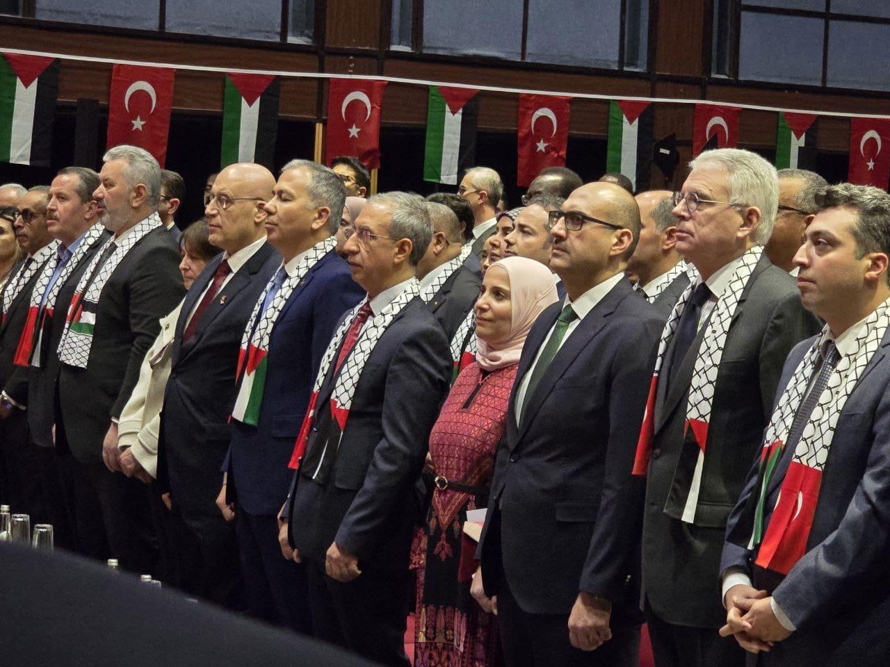 أنقرة 7-12-2025 وفا- أحيت سفارة دولة فلسطين لدى الجمهورية التركية، بالتعاون مع وزارة الخارجية التركية، وبرنامج الأمم المتحدة الإنمائي، وبعثة جامعة الدول العربية لدى تركيا، اليوم العالمي للتضامن مع الشعب الفلسطيني بفعالية مركزية أقيمت في العاصمة أنقرة، بحضور رسمي ودبلوماسي واسع شمل مسؤولين من الدولة التركية، وسفراء الدول العربية والأجنبية، وممثلي مؤسسات المجتمع المدني، إضافة إلى إعلاميين أتراك وعرب.
