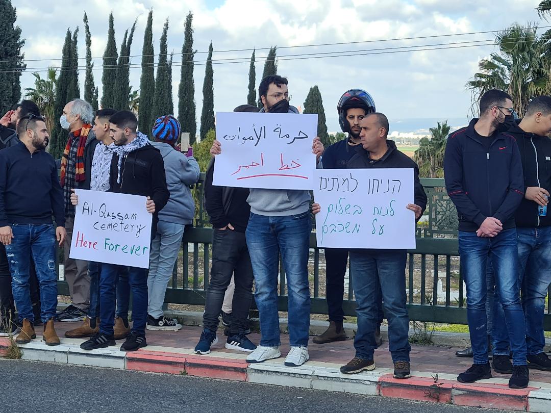 حيفا 11-2-2022 وفا- تظاهر نشطاء وأهالي، اليوم الجمعة، على مدخل مقبرة القسام في بلدة الشيخ المهجرة في حيفا داخل أراضي عام 1948، تنديدا باعتداء السلطات الإسرائيلية على المقبرة، وتجريف جزء من الأراضي تمهيدا للاستيلاء عليها.