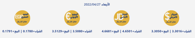 رام الله 27-4-2022 وفا- جاءت أسعار العملات مقابل الشيقل الإسرائيلي، اليوم الأربعاء، حسب سلطة النقد، على النحو التالي: