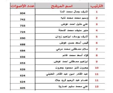 وفيما يلي أسماء الفائزين في انتخابات غرفة تجارة وصناعة محافظة طولكرم: