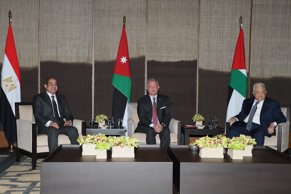 العقبة 10-1-2024 وفا- أكد العاهل الأردني الملك عبد الله الثاني، والرئيس المصري عبد الفتاح السيسي، والرئيس محمود عباس، اليوم الأربعاء، تصديهم لأية خطط إسرائيلية لتهجير الفلسطينيين في الضفة الغربية وقطاع غزة، وضرورة إدانتها دوليا والتصدي لها.
