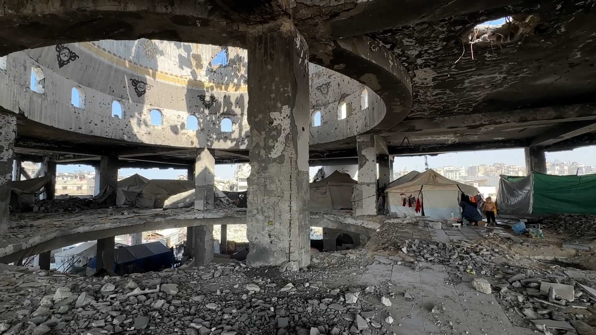 مسجد مدمّر في النصيرات يصبح مأوى للنازجين