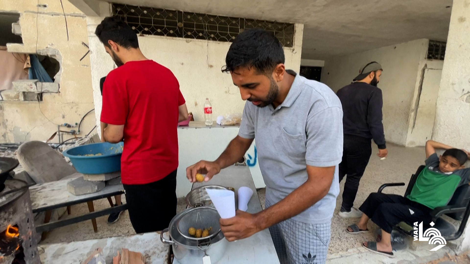 متطوعون يعدّون الفلافل للنازحين في غزة