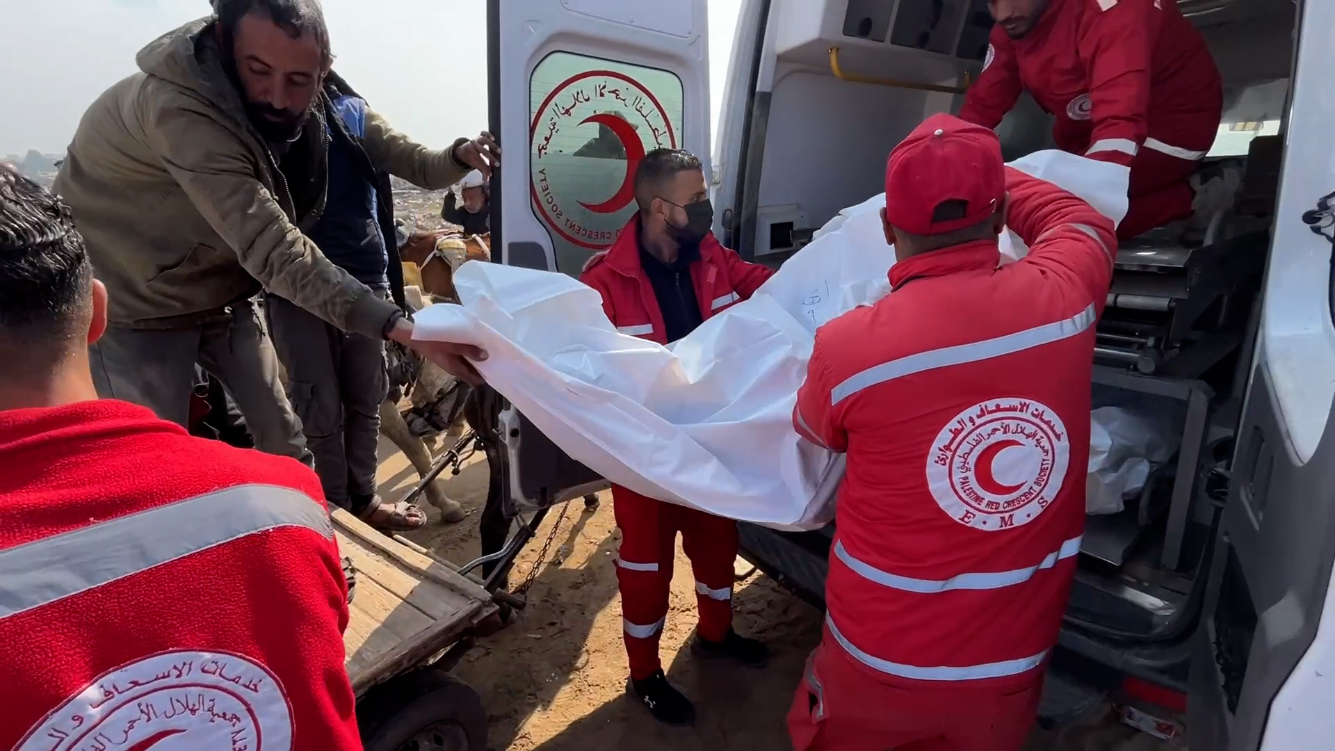 نقل شهداء ومصابين للمستشفى في خان يونس