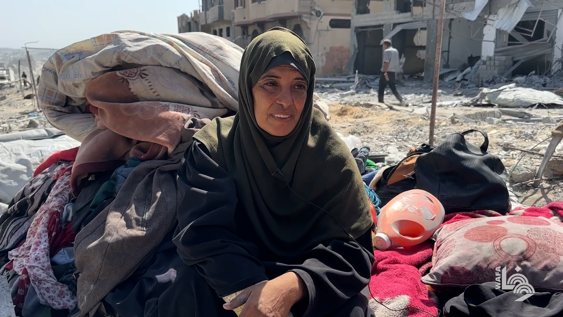 أم محمد تنصب خيمة على أنقاض منزلها بغزة