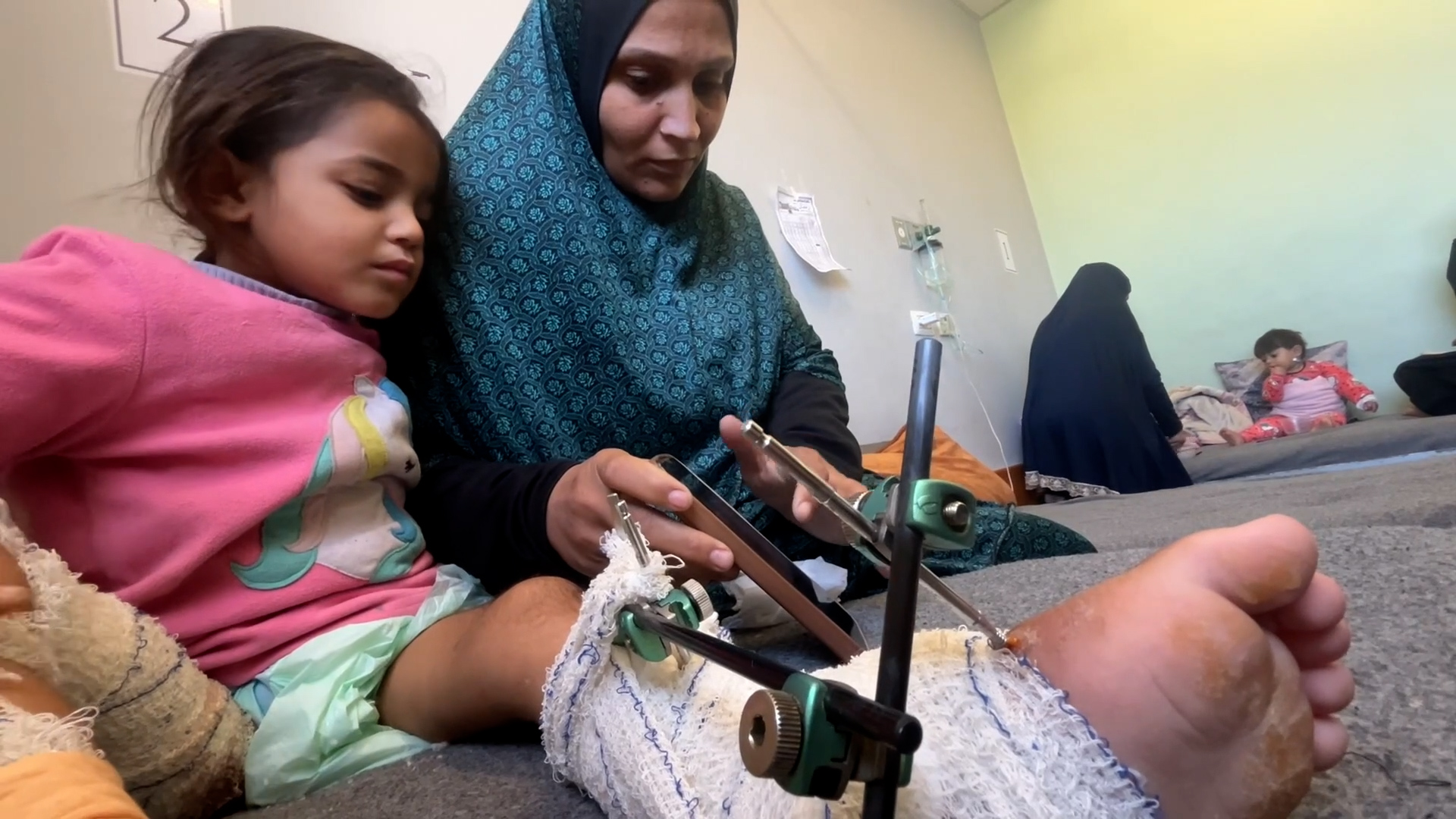 الطفلة جوري جندية تتلقى العلاج بعد إصابتها بقذيفة