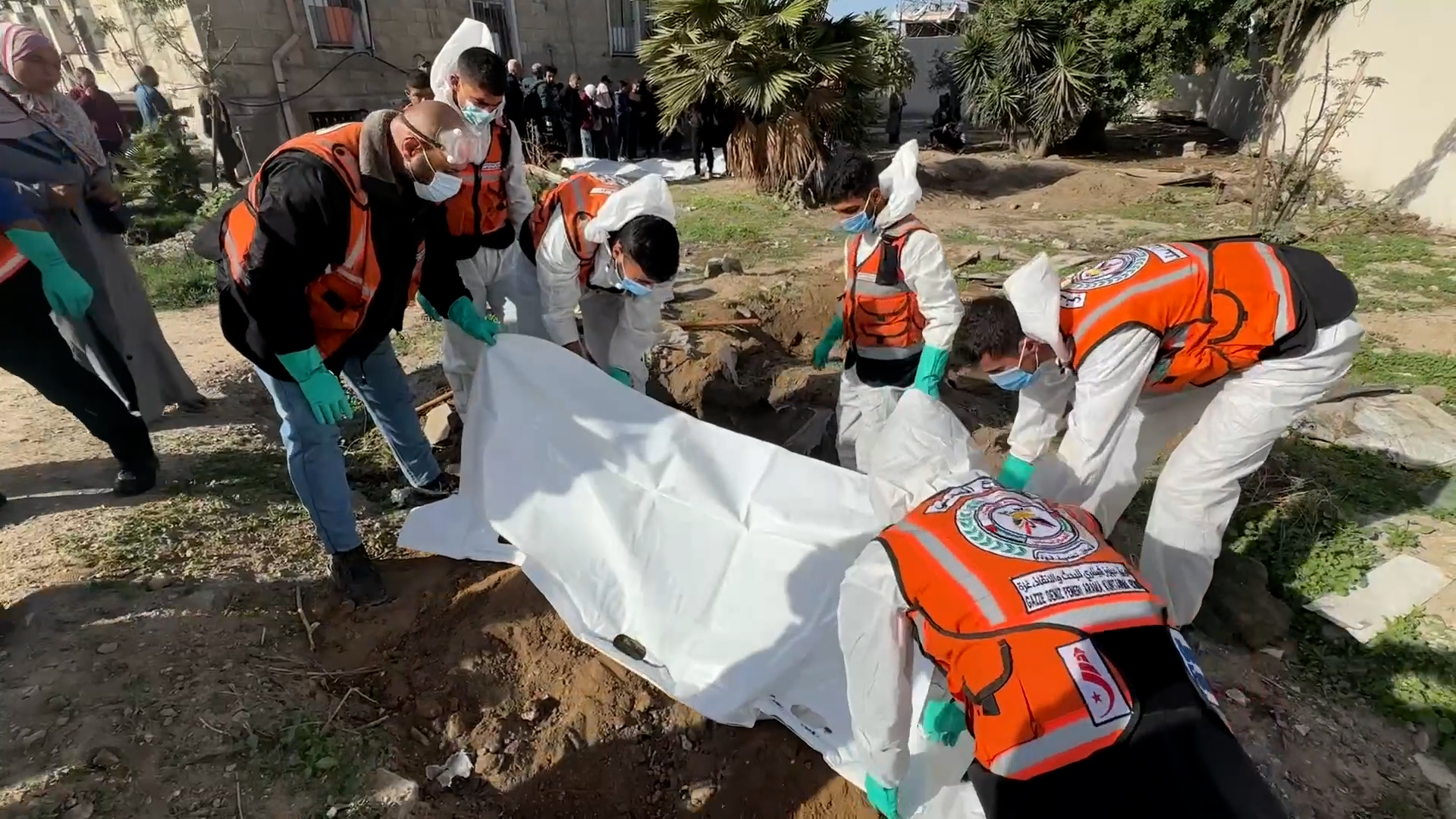 وداع وتشييع شهداء ارتقوا في هجمات إسرائيلية على عدة مناطق في خان يونس جنوب قطاع غزة