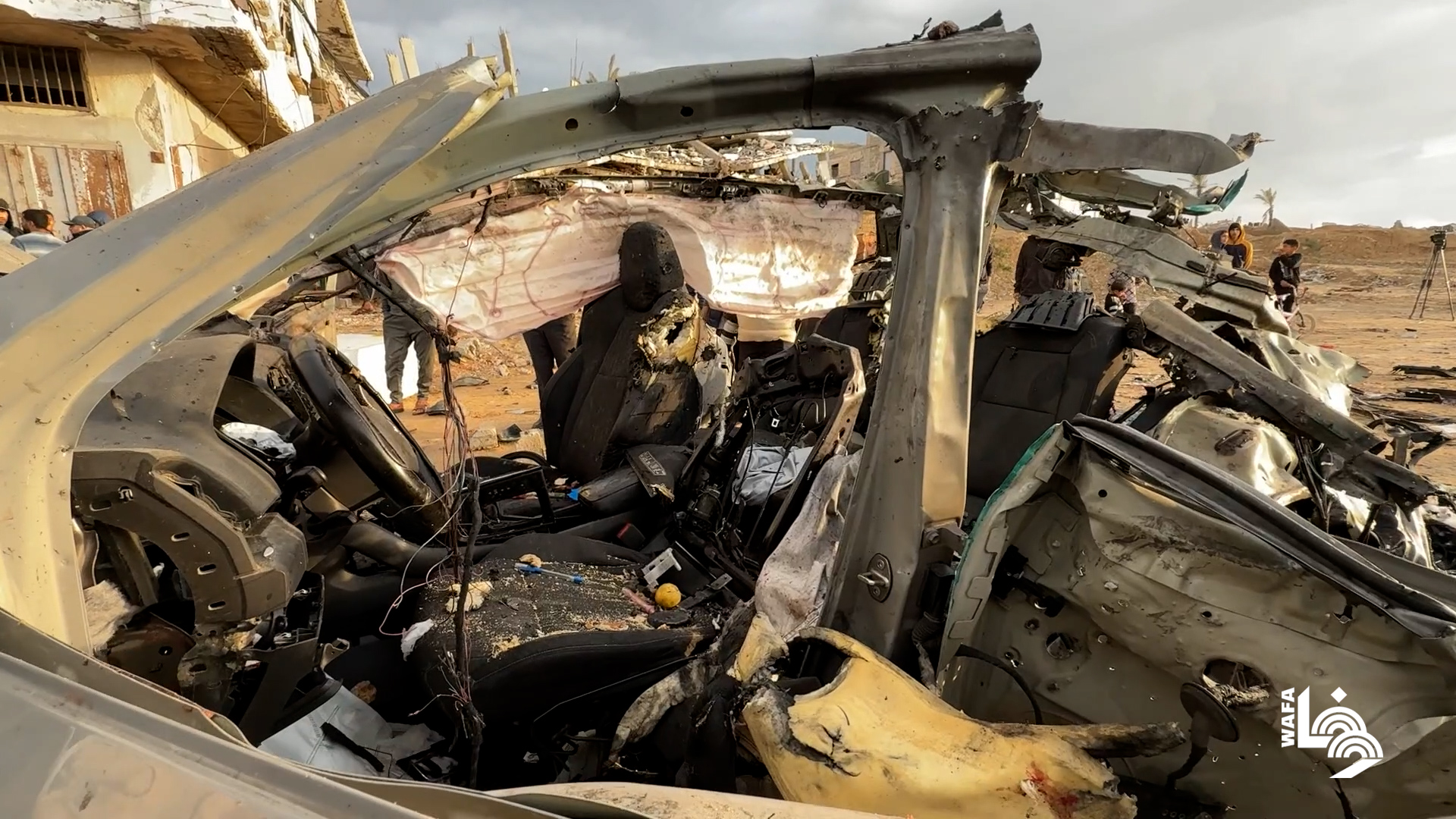 تفقّد مركبة استهدفت بقصف إسرائيلي في غزة