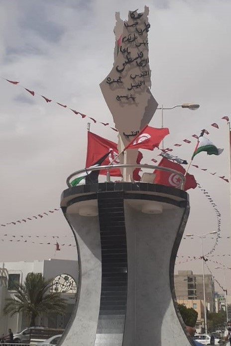 تونس 3-10-2020 وفا- دشن رئيس بلدية مدينة مدنين المنصف بن يامنة، اليوم السبت، مجسما لخارطة فلسطين التاريخية، وسط الساحة الرئيسية للمدينة، بإشراف والي ولاية مدنين.