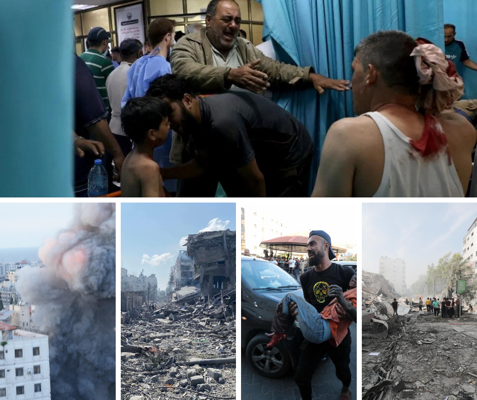 قال الرئيس المصري عبد الفتاح السيسي "تابعت ببالغ الأسى القصف الإسرائيلي لمستشفى الأهلي المعمداني مساء الثلاثاء في قطاع غزة، والذي أسفر عن سقوط مئات الضحايا الأبرياء والجرحى والمصابين من المواطنين الفلسطينيين في غزة".