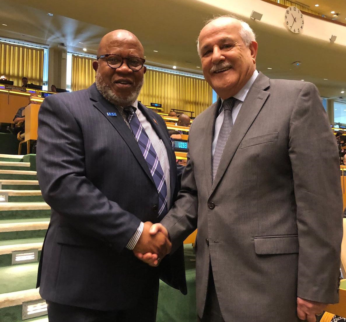 نيويورك 1-6-2023 وفا- هنأ مندوب فلسطين الدائم لدى الأمم المتحدة السفير رياض منصور، الدبلوماسي المخضرم من جمهورية ترنداد وتوباغو، دنيس فرانسيس، بانتخابه رئيسا للدورة الـ78 للجمعية العامة للأمم المتحدة.