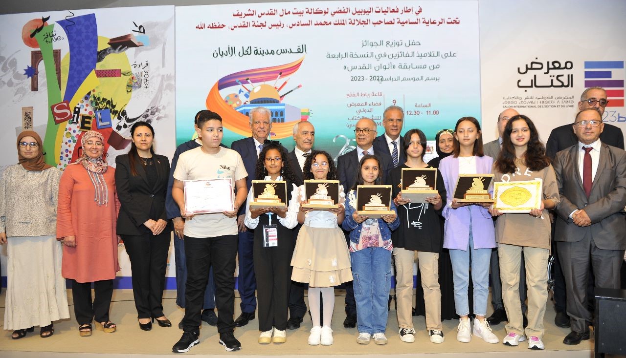 الرباط 9-6-2023 وفا- نظمت وكالة "بيت مال القدس الشريف"، اليوم الجمعة، في رحاب المعرض الدولي للنشر والكتاب، حفل توزيع الجوائز على الفائزين في الدورة الرابعة من مسابقة "ألوان القدس" للموسم الدراسي 2022-2023.