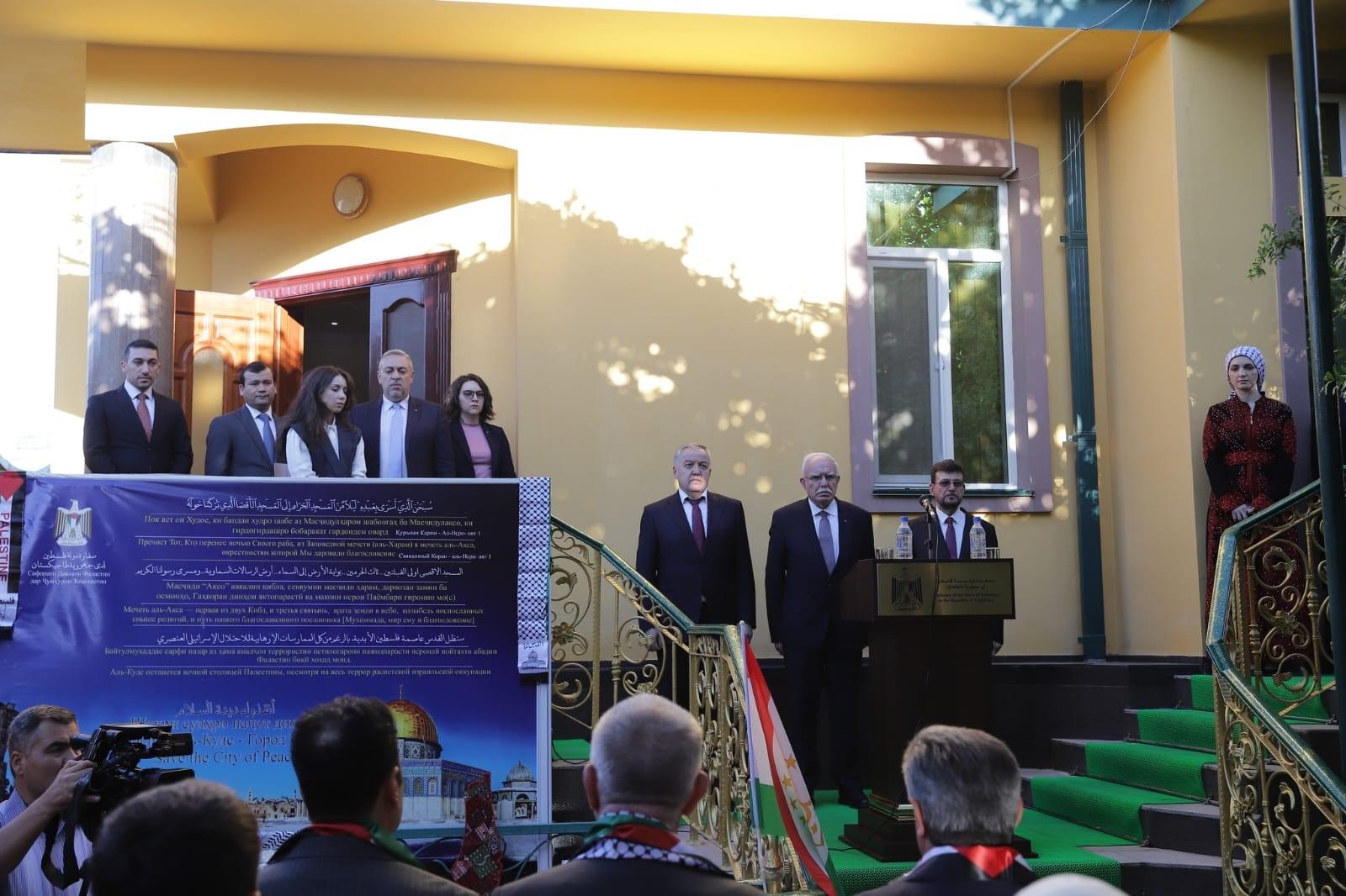 دوشنبيه 30-8-2023 وفا- افتتح وزير الخارجية والمغتربين رياض المالكي، ووزير خارجية جمهورية طاجيكستان سراج الدين مهر الدين، سفارة دولة فلسطين في العاصمة الطاجيكية، دوشنبيه، بحضور أعضاء السلك الدبلوماسي المعتمد لدى جمهورية طاجيكستان وكبار المسؤولين في الحكومة الطاجيكية، ورؤساء المنظمات الدولية وممثلي المجتمع المدني.