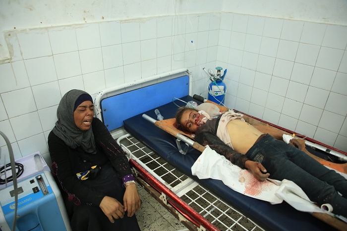 مواطنون يبكون بعد ارتقاء أحد أقربائهم في المستشفى الأهلي العربي "المعمداني" في غزة (تصوير: الأناضول)