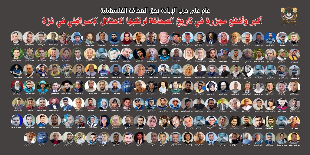 رام الله 8-10-2024 وفا- قالت نقابة الصحفيين الفلسطينيين، إن الاحتلال الإسرائيلي ارتكب أكبر وأفظع مجزرة بحق الصحافة في العالم عبر التاريخ خلال عام من حرب الإبادة التي يشنها على شعبنا.
