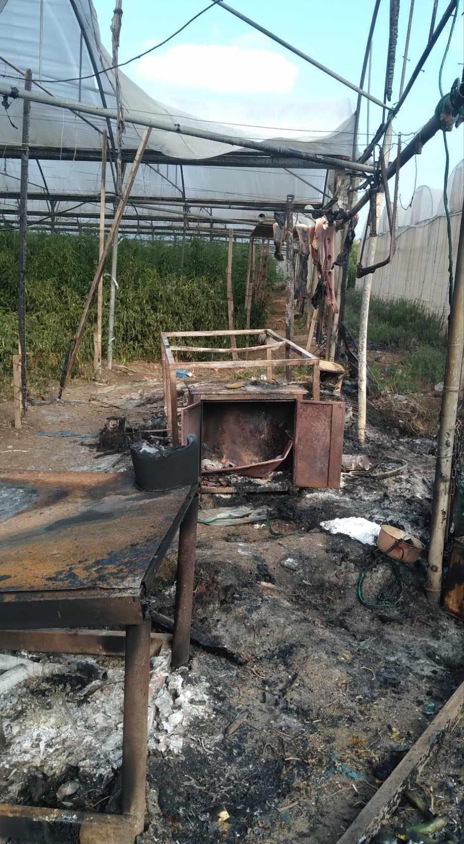 وأضاف، أن النيران أتت على كل البلاستيك والحديد والشبك، والمعدات الزراعية و"ماتورات" وشبكات المياه والرش، والأدوية الزراعية، إضافة إلى تضرر كبير في محيط المنطقة.