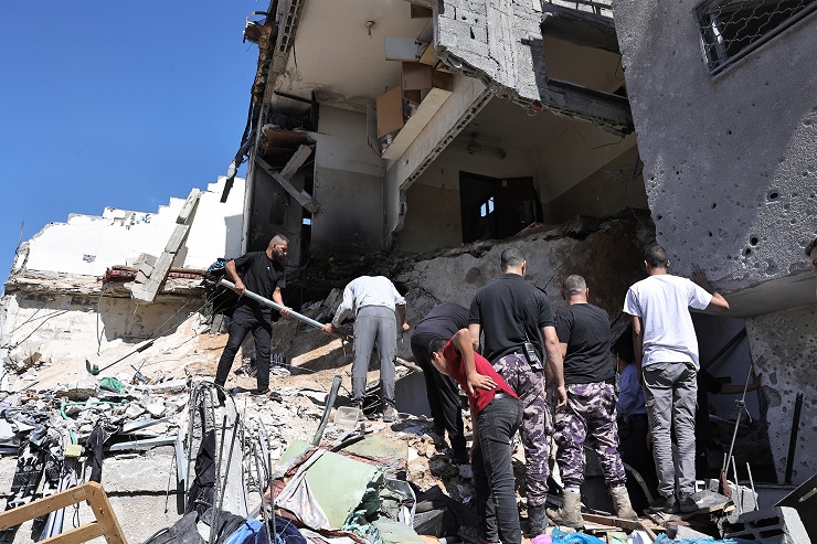 وعقب عملية قصف المنزل، هرعت طواقم اسعاف الهلال الأحمر الى المخيم، وأعلنت عن عدم تمكنها من دخول المنزل المستهدف بسبب اندلاع النيران، في الوقت الذي قامت طواقم الدفاع المدني بالسيطرة على الحريق، وعملت مع المواطنين على البحث تحت ركام عن إصابات أو شهداء.