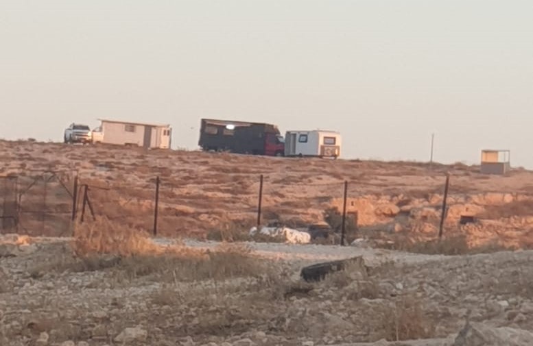 مستعمرون يضعون ثلاثة بيوت متنقلة في منطقة الركيز بمسافر يطا