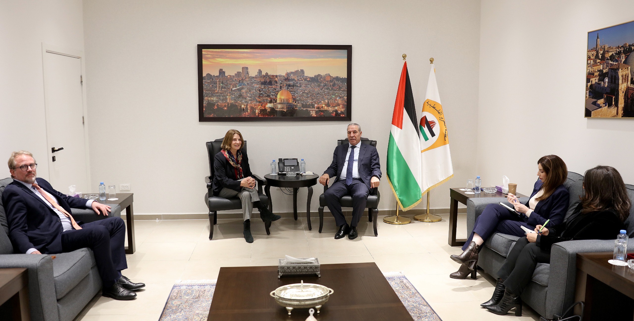 رام الله 15-1-2026 وفا- التقى نائب رئيس دولة فلسطين حسين الشيخ، السفيرة منى يول، والقائم بأعمال سفير مملكة النرويج لدى فلسطين إريك بيرغراف، وذلك لبحث آخر المستجدات الراهنة في الأراضي الفلسطينية، ولا سيما الإجراءات التصعيدية التي تنفذها سلطات الاحتلال في الضفة الغربية بما فيها القدس الشرقية، وقطاع غزة، إلى جانب تصاعد اعتداءات المستوطنين.