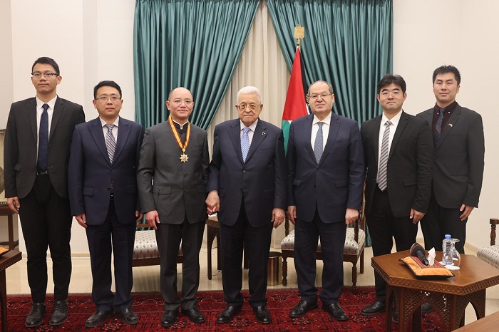 رام الله 17-1-2026 وفا- منح رئيس دولة فلسطين محمود عباس، رئيس مكتب جمهورية الصين الشعبية تسنغ جيشين، "نجمة الصداقة" من وسام الرئيس محمود عباس.