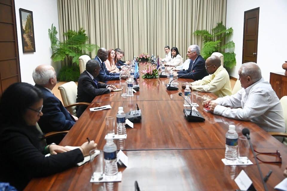 وخلال الزيارة، عقد الوفد اجتماعا في العاصمة هافانا مع الرئيس الكوبي ميغيل دياز كانيل، بحضور وزير الخارجية الكوبي برونو هيرنانديز وعدد من القيادات الكوبية، في قصر الثورة، بحضور سفير دولة فلسطين لدى جمهورية كوبا عمار زوربا.