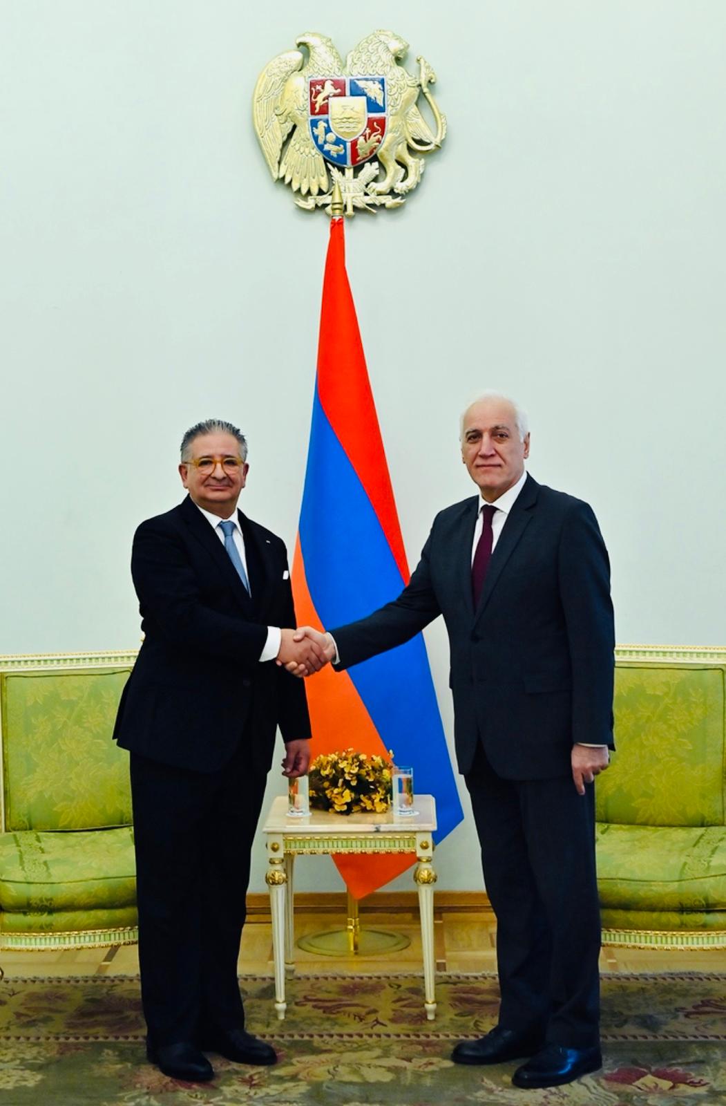بدوره، رحب رئيس الجمهورية الأرمينية بالسفير، وأكد حرص بلاده على تعزيز العلاقات بين البلدين، واستعدادها لتقديم المساعدات الإنسانية لأبناء شعبنا الفلسطيني في قطاع غزة.
