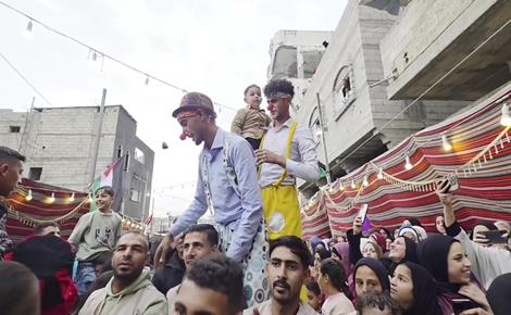 المعتقل المفرج عنه من سجون الاحتلال الإسرائيلي محمد الصوفي يتزوج في خيمة النزوح بمنطقة المواصي في خان يونس جنوب قطاع غزة.